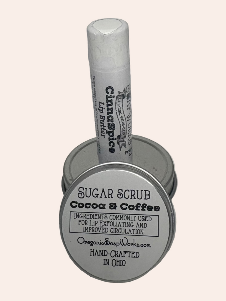 Cocoa and Coffee Lip Scrub and 'Cinnaspice' Cinnamon and Clove Lip Butter